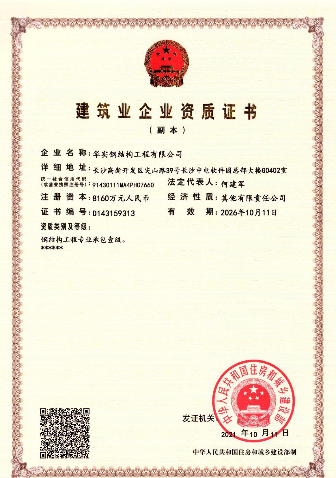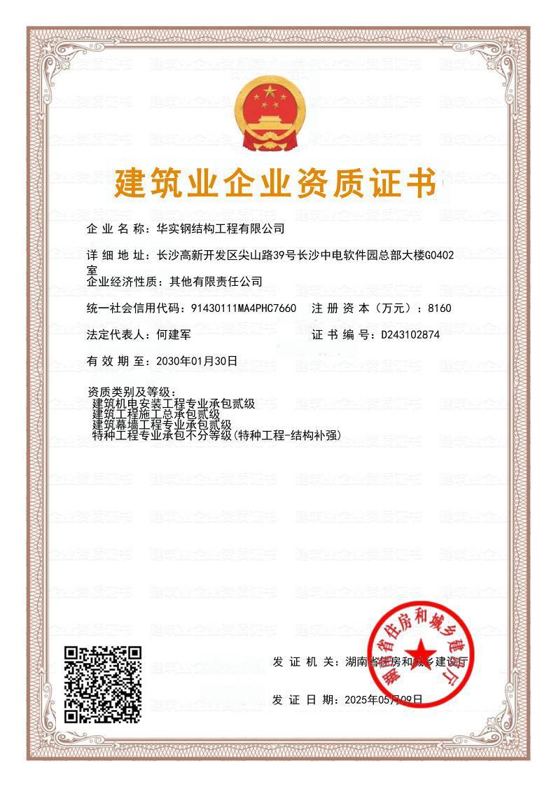 華實鋼結構工程有限公司是華實建設集團有限公司的專業(yè)鋼結構子公司,鋼結構工程廠家,公司擁有鋼結構工程專業(yè)承包壹級資質(zhì)、建筑工程施工總承包貳級資質(zhì)等建筑資質(zhì),注冊資金8160萬,公司生產(chǎn)制造基地湖南泰成鋼結構有限公司,坐落于寧鄉(xiāng)市大成橋工業(yè)園,自成立以來一直致力于鋼結構產(chǎn)品研發(fā)、設計、制造、施工、銷售業(yè)務,具備按期保質(zhì)交付客戶的全流程保障的專業(yè)實力,主要業(yè)績遍布國內(nèi)及海外市場。
